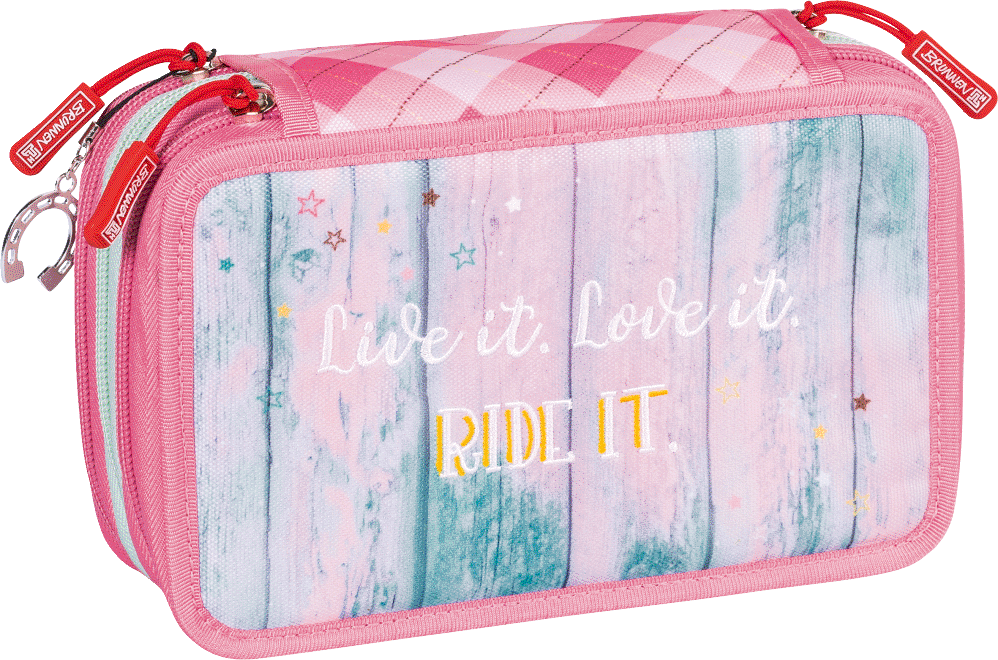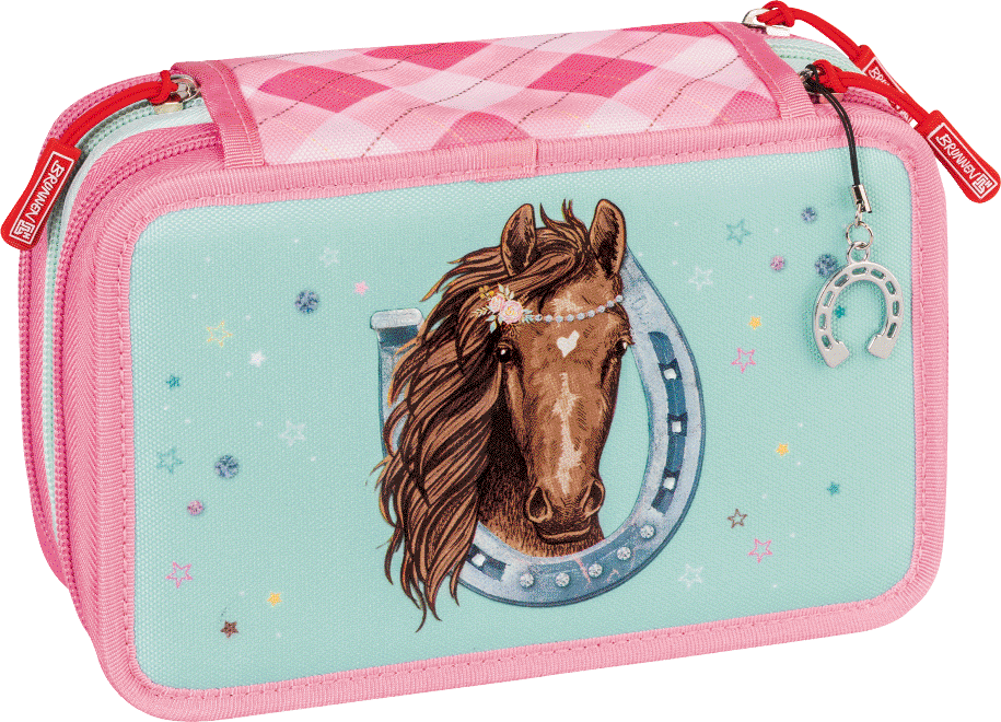 ascutitoare metalica dubla, radiera, foarfece, compartiment pentru bani.