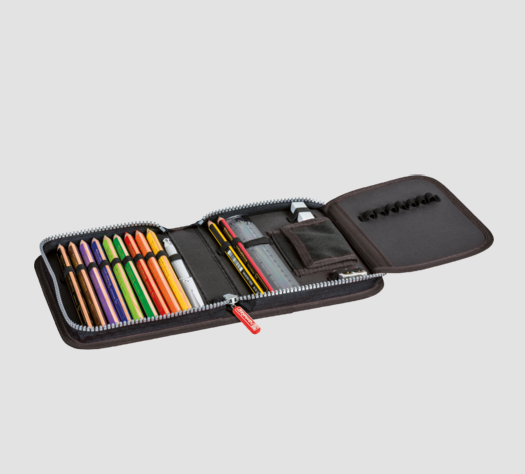 riglă 16 сm, ascuţitoare metalică dublă, radieră, compartiment pentru bani, orar,